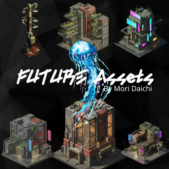 Future Assets Free - 2D City" is a free asset pack containing 37 isometric 2D buildings for your games.